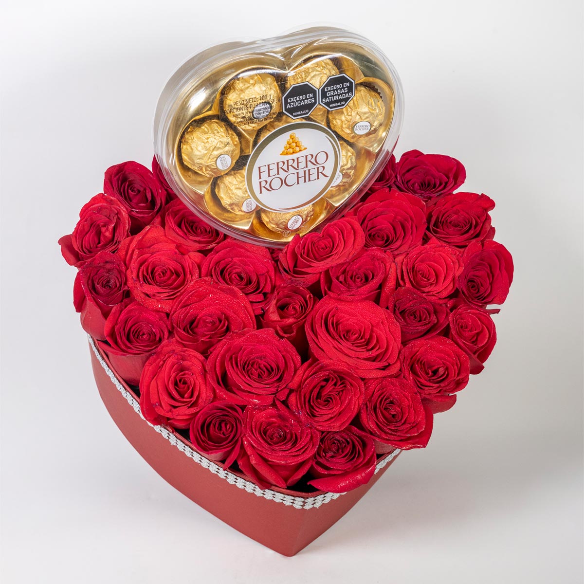 La combinación infalible de flores frescas y ferrero rocher. Un diseño de lujo que garantiza frescura y sabor, creado para ocasiones especiales donde solo lo mejor es suficiente el detalle que conquista todos los sentidos. La elegancia de las flores frescas se une al sabor irresistible de los chocolates ferrero rocher un duo perfecto para enamorar .Su diseño exclusivo,creado para sorprender con lujo y dulzura. Perfecto para aniversarios, cumpleaños o momentos donde quieres decir «te mereces lo mejor»