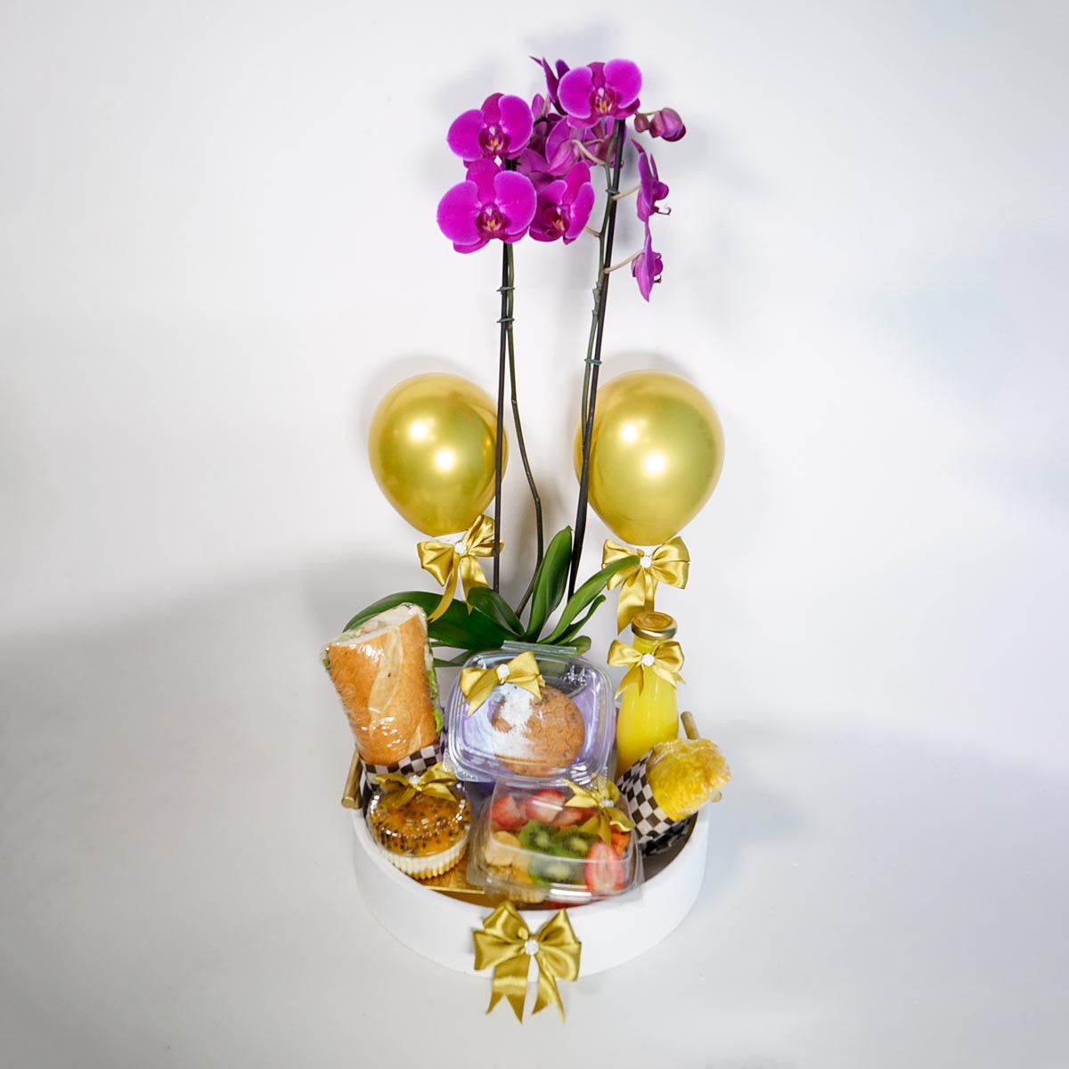 Desayuno sorpresa con orquídeas moradas